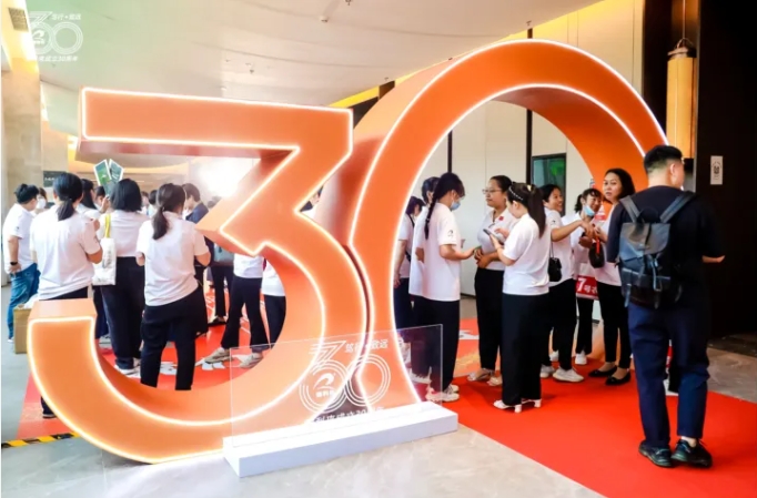 瑞利來200多名員工和嘉賓齊聚深圳銀湖國際會議中心,進門處是30周年的簽到墻,長廊地面呈現瑞利來30年發展的關鍵里程碑,長廊兩邊有十幾個市集展位,每個展位展示瑞利來的“爆款”產品和新研發的產品,爆款產品的銷售數據更加凸顯,吸引了眾多嘉賓和瑞利來家人駐足換券購買試吃,市集摩肩接踵,宛如一條人氣爆滿的新潮美食街。